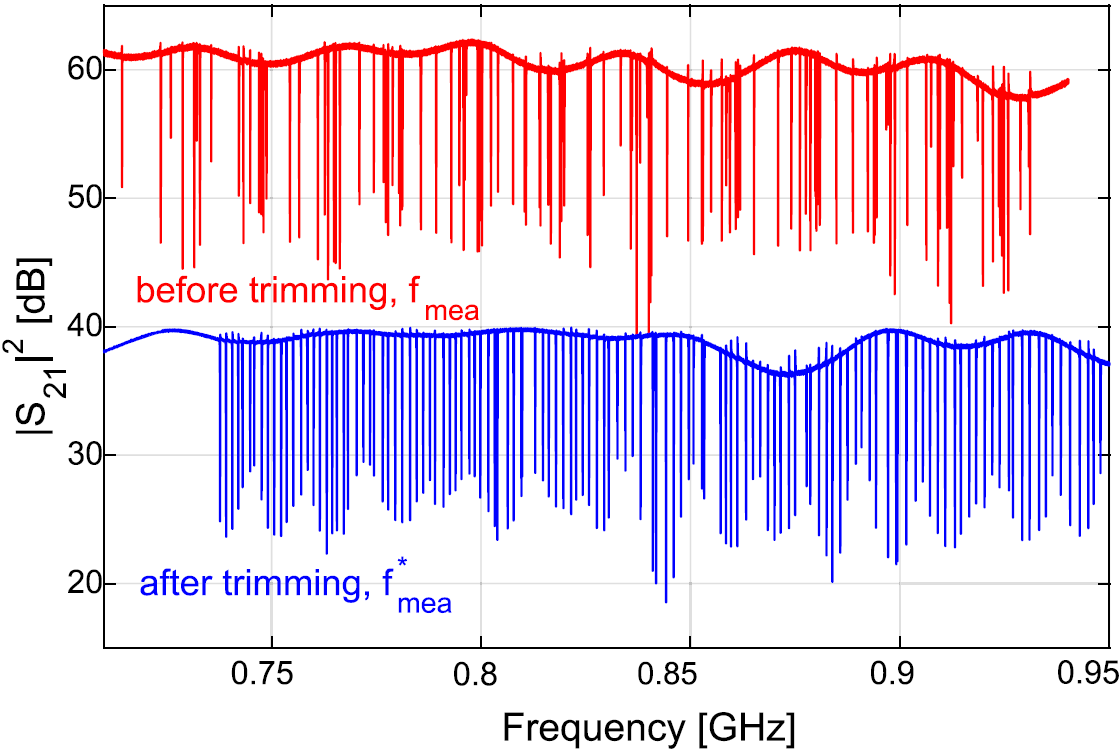 fine-tune each resonator’s frequency by lithographically trimming a small length, calculated from