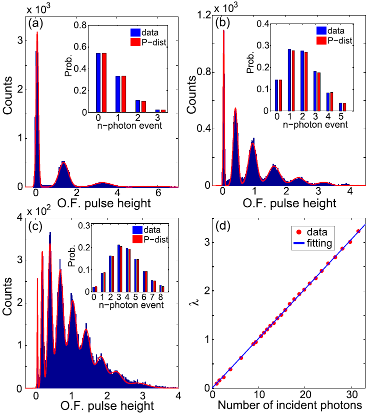 of 0.22 eV and resolved up to 7 photons per optical pulse, both greatly improved from previously