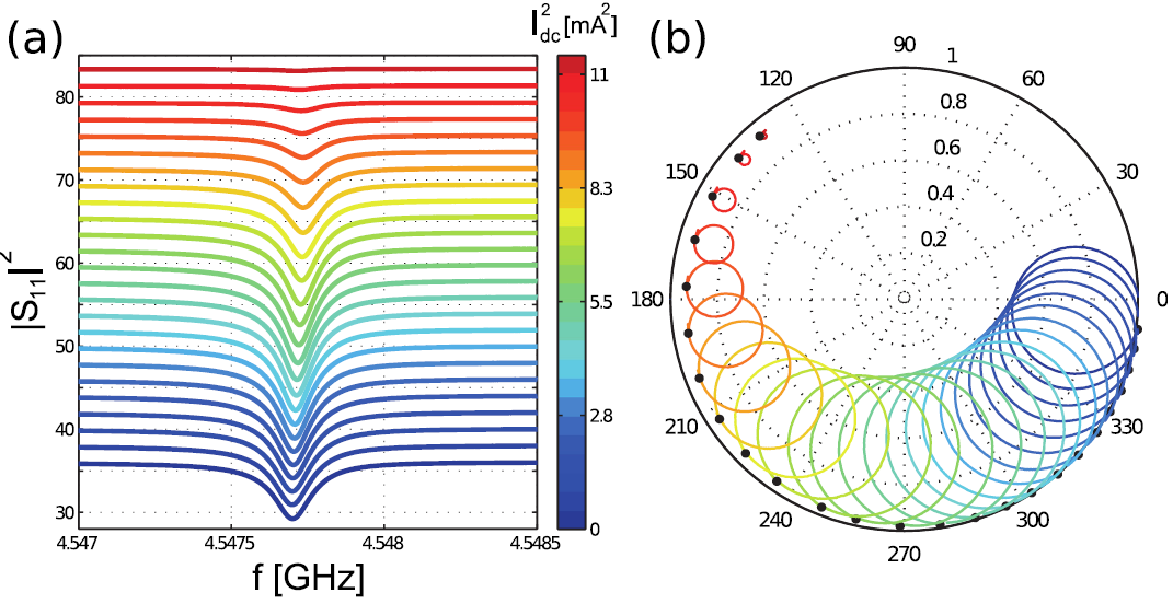 strength and coupling quality factor Qc. We have demonstrated Qc tuning over a factor of 40, for a 4.5 GHz resonator by applying a DC current